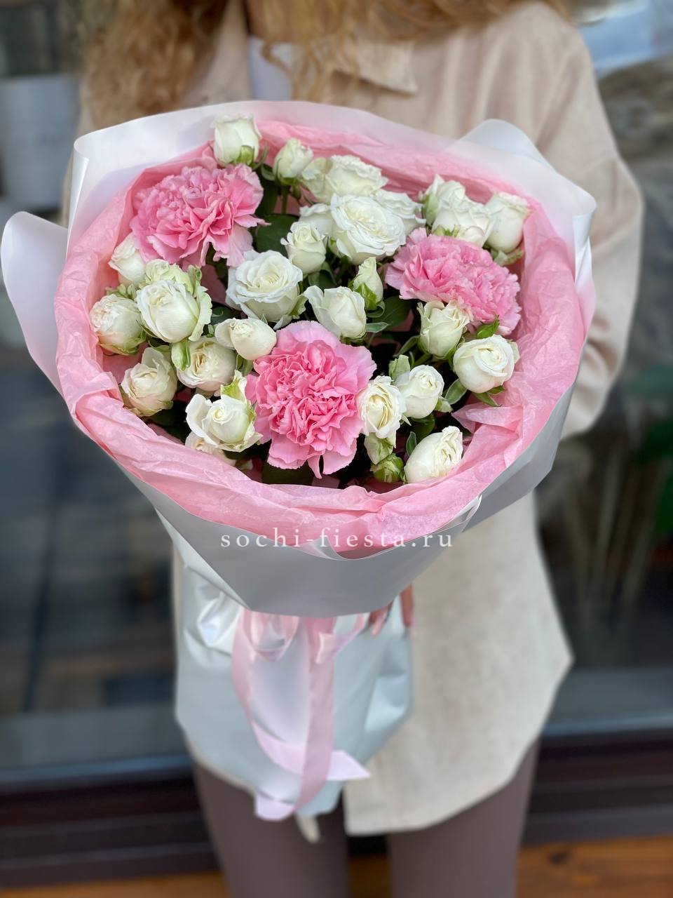 Мы работаем только со свежими цветами — букеты радуют от 7 до 14 дней и дольше при правильном уходе.