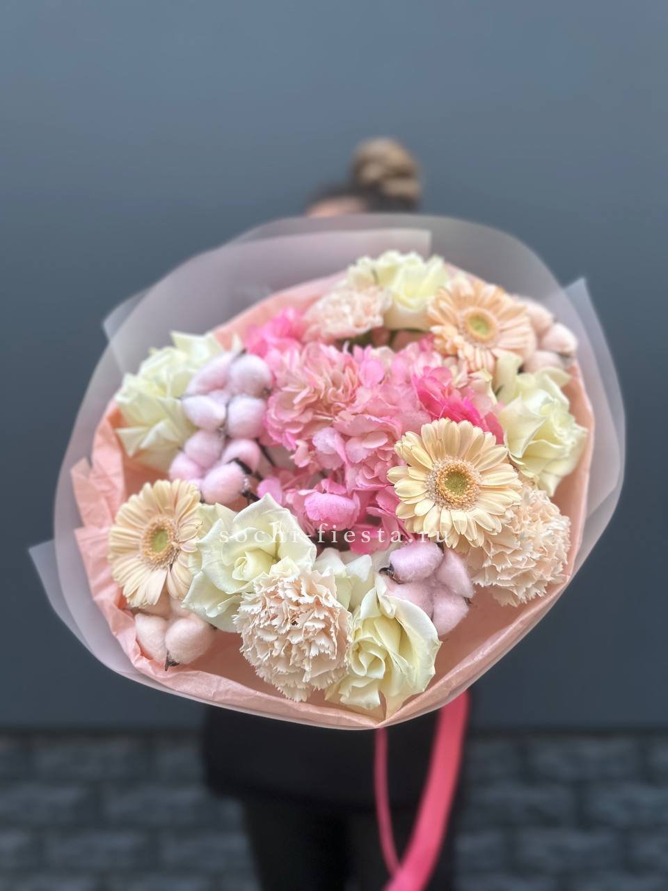 гортензия, бомбастик, эвкалипт, авторское оформление.