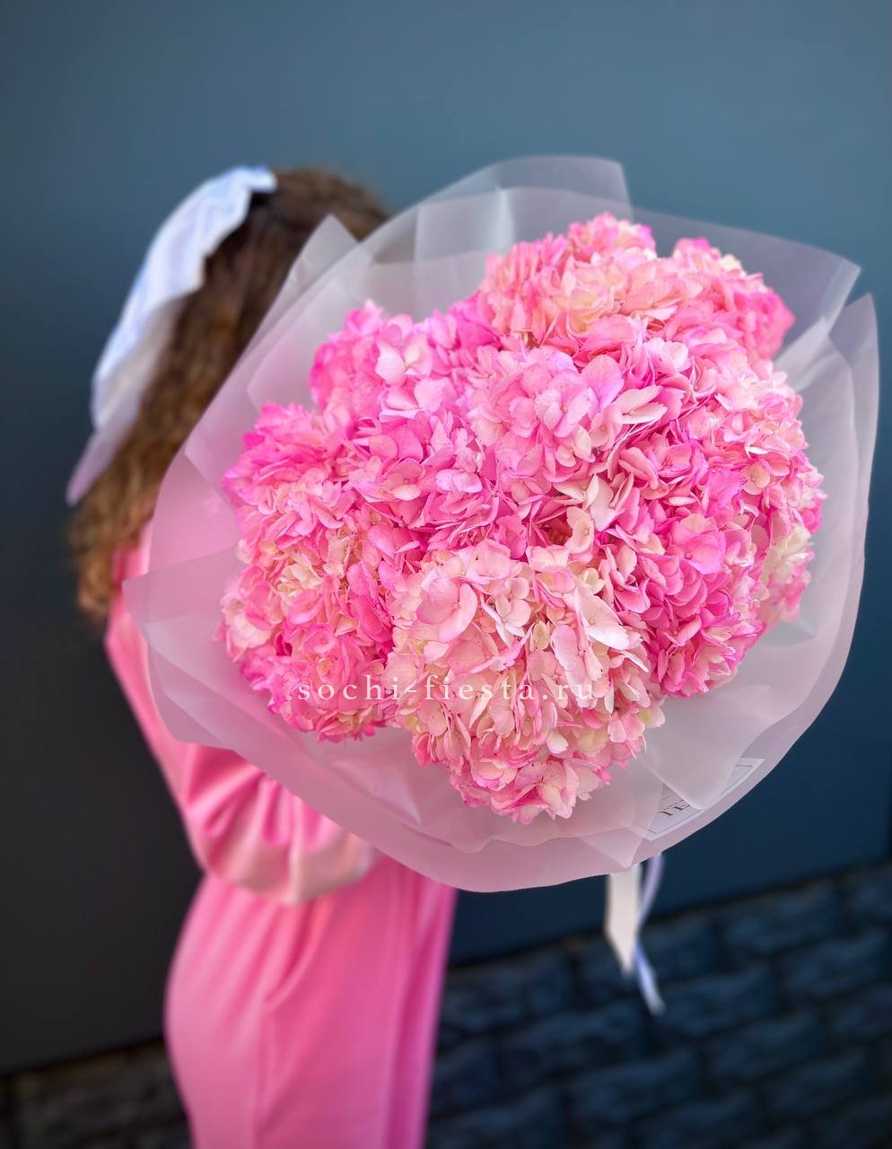 Сочетание пышной голубой гортензии и классических белых роз — это гимн нежности и чистоты. Букет, который не просто удивляет своим масштабом, но и дарит ощущение безмятежности. Идеальный выбор для самого искреннего признания.