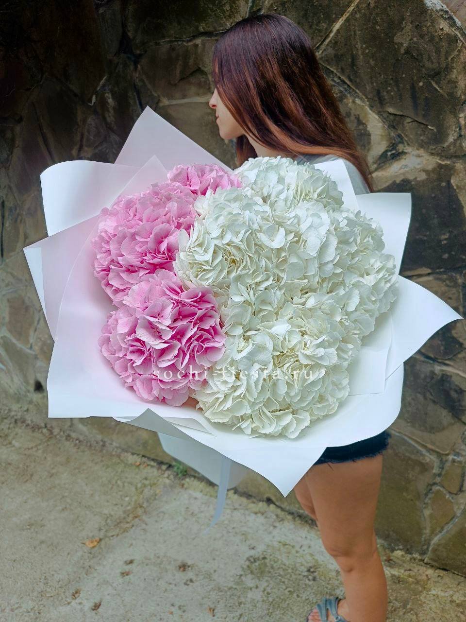 гортензия - 7 шт., лента, дизайнерская упаковка.