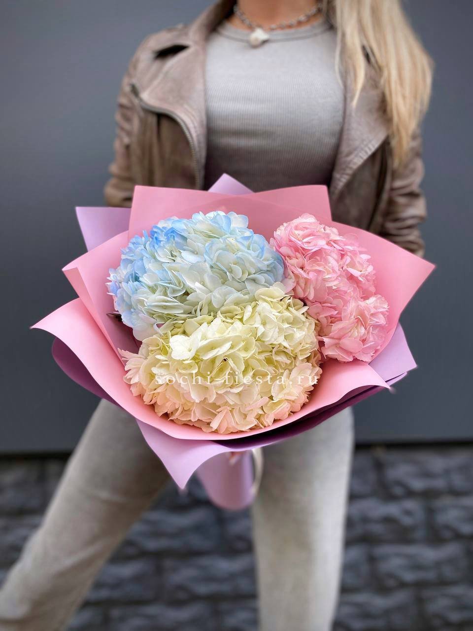Для заказа товара " Букет пиджачок из 5 гортензий" с доставкой в Астрахани нажмите в корзину