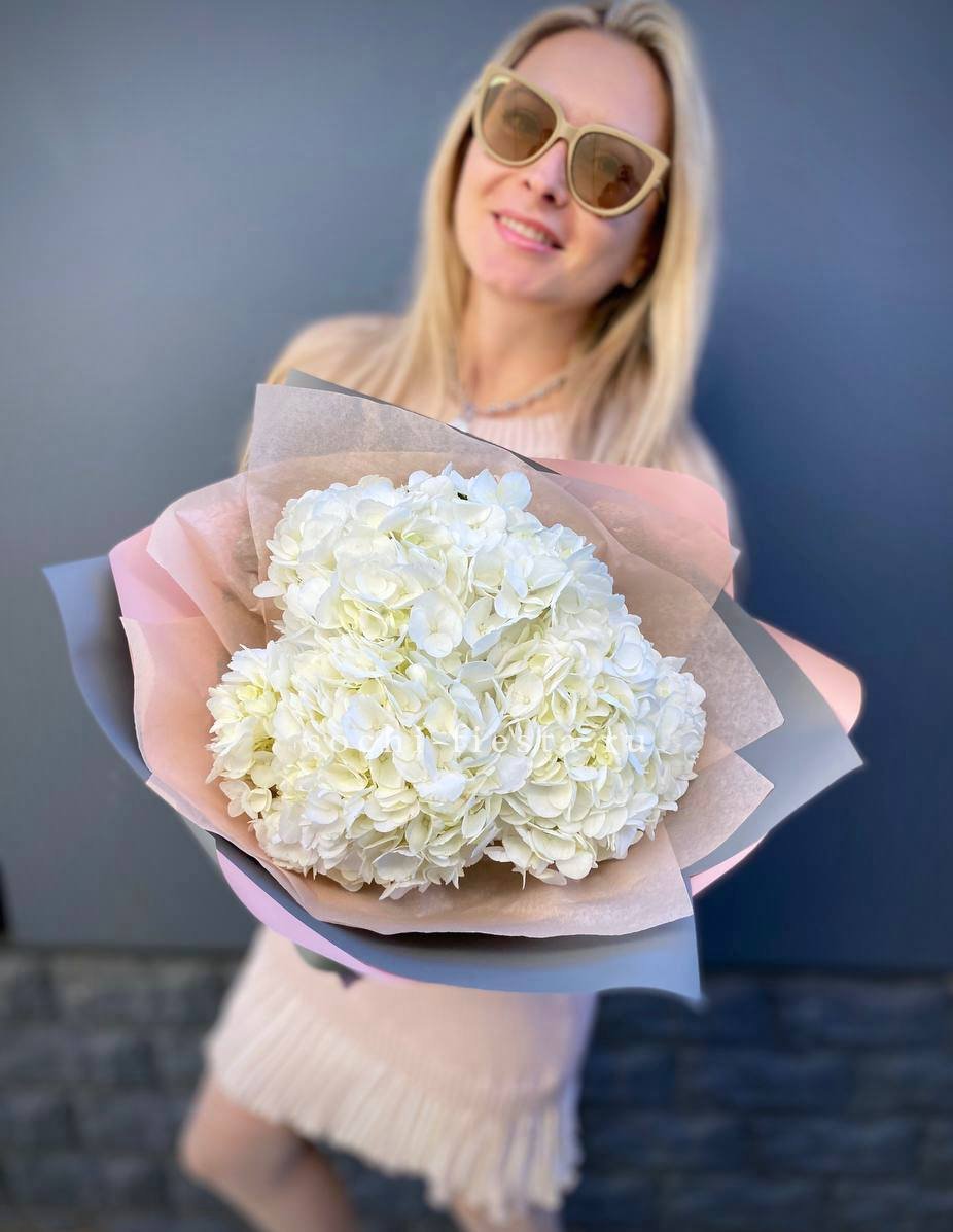 Для заказа товара "Букет из трёх белых гортензий" с доставкой в Астрахани нажмите в корзину