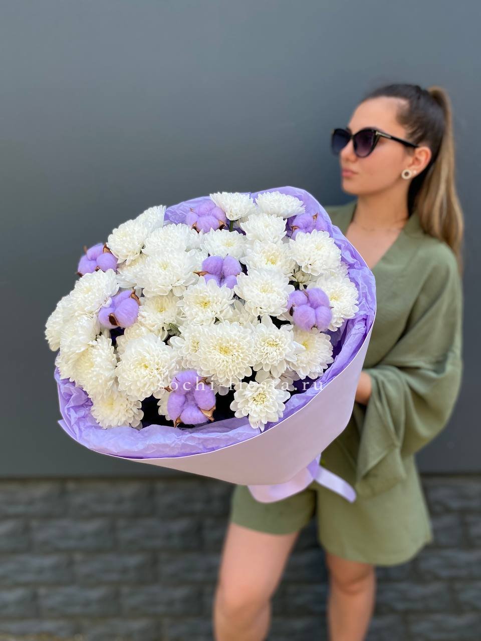 Для заказа товара " Букет хризантем и хлопка" с доставкой в Астрахани нажмите в корзину