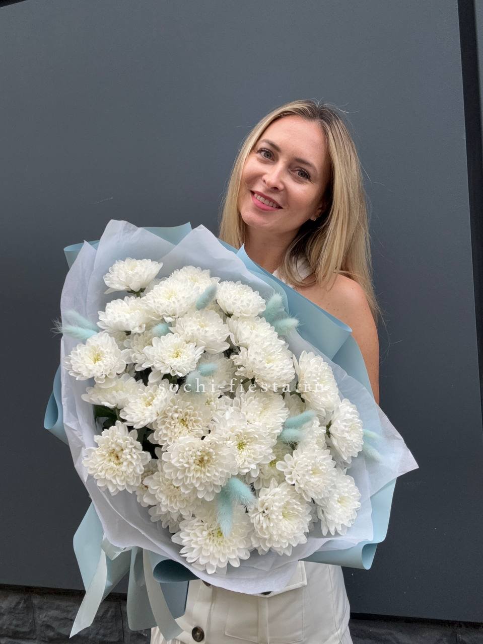 хризантема кустовая - 9 шт., лагурус, пленка,  лента.