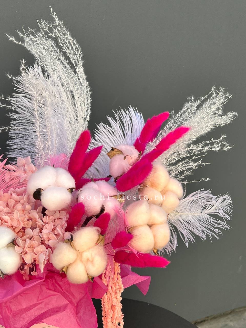 хлопок, лагурус, амарант, перья, аспарагус, цилиндр D13.