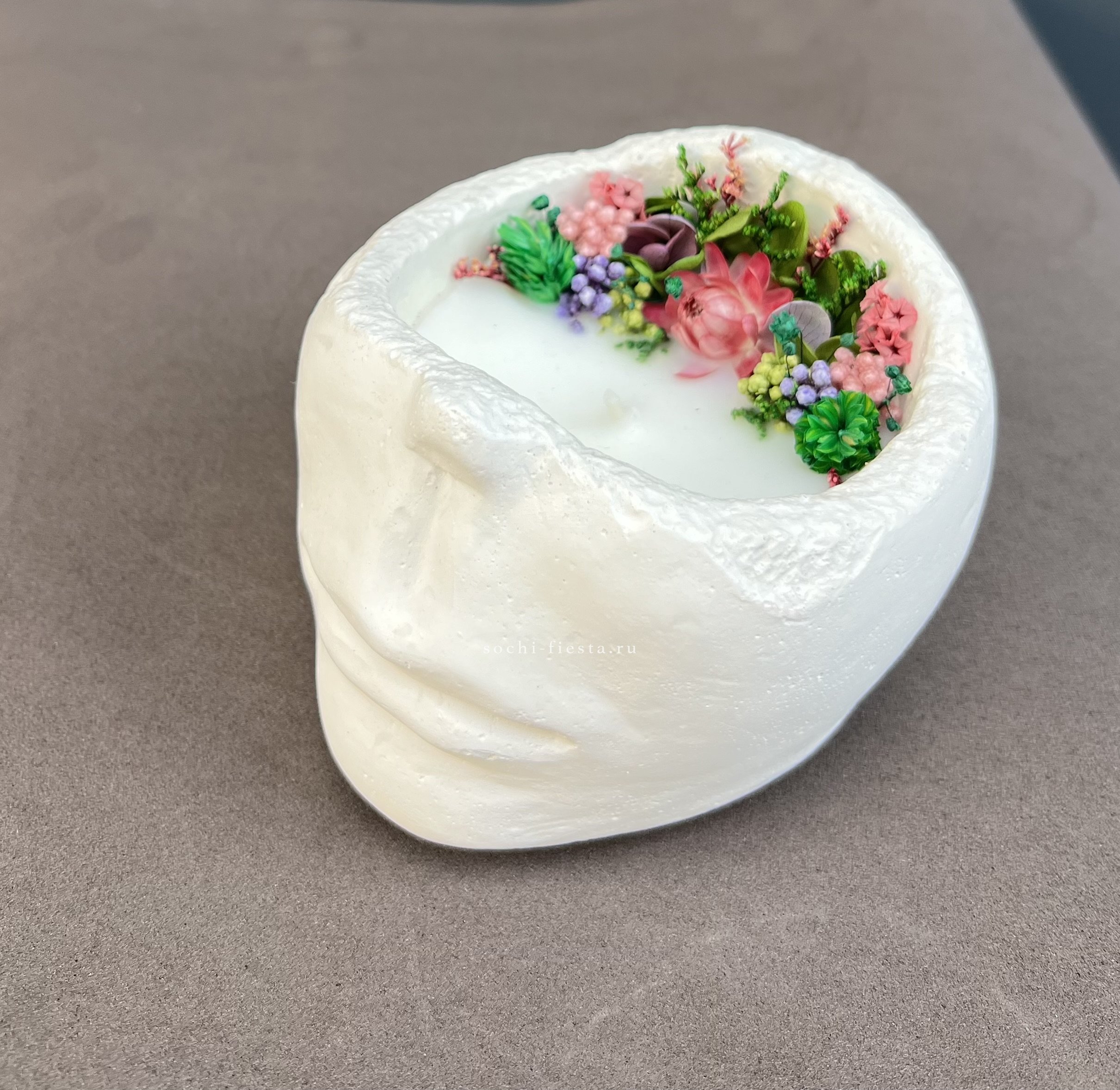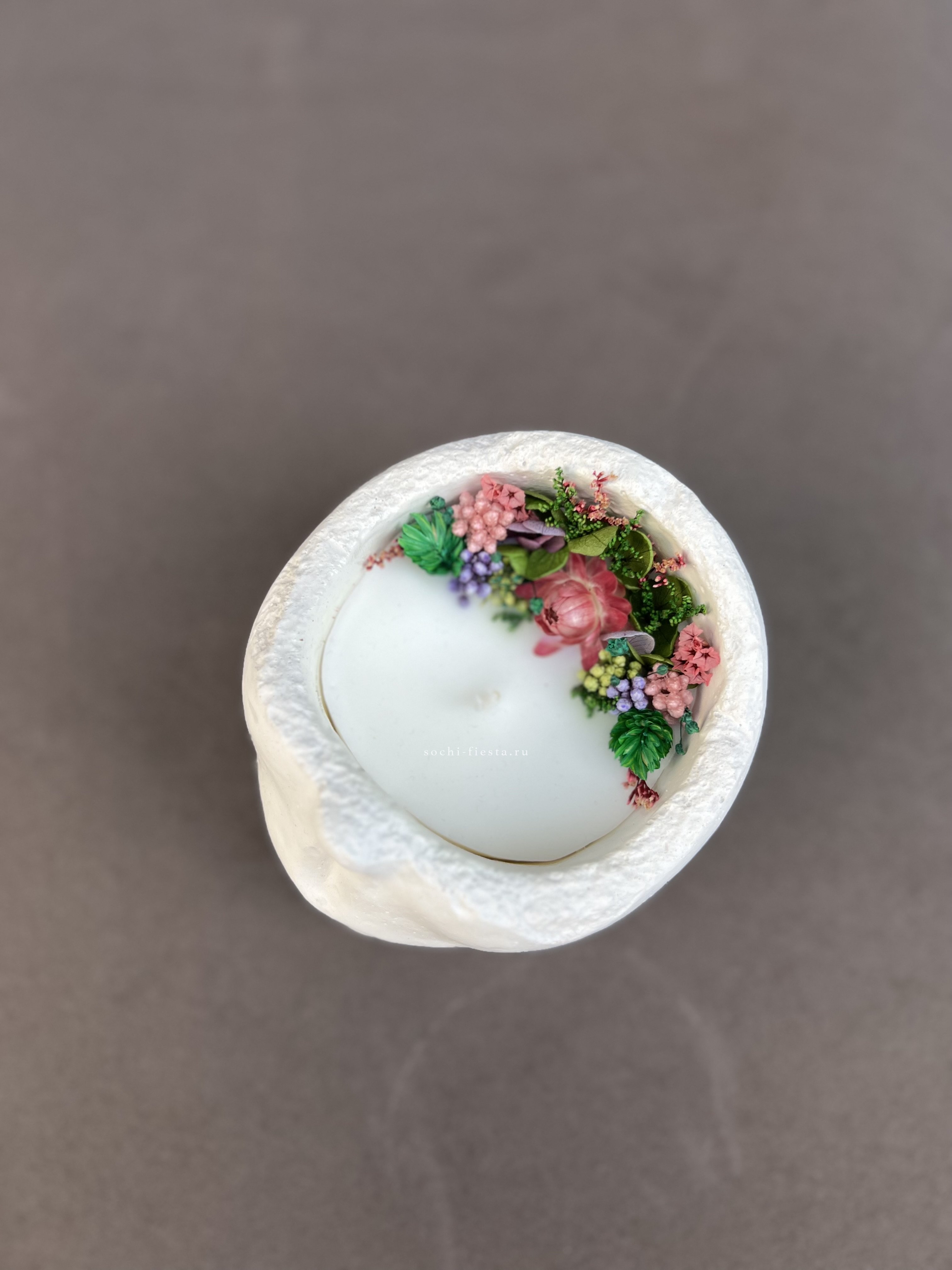 свеча ручной работы из кокосового воска в гипсе. Аромат - Бузина. Объем 150мл. Подарок является дополнением к цветочной композиции. Свеча может быть подарена коллеге, сестре, любимой.