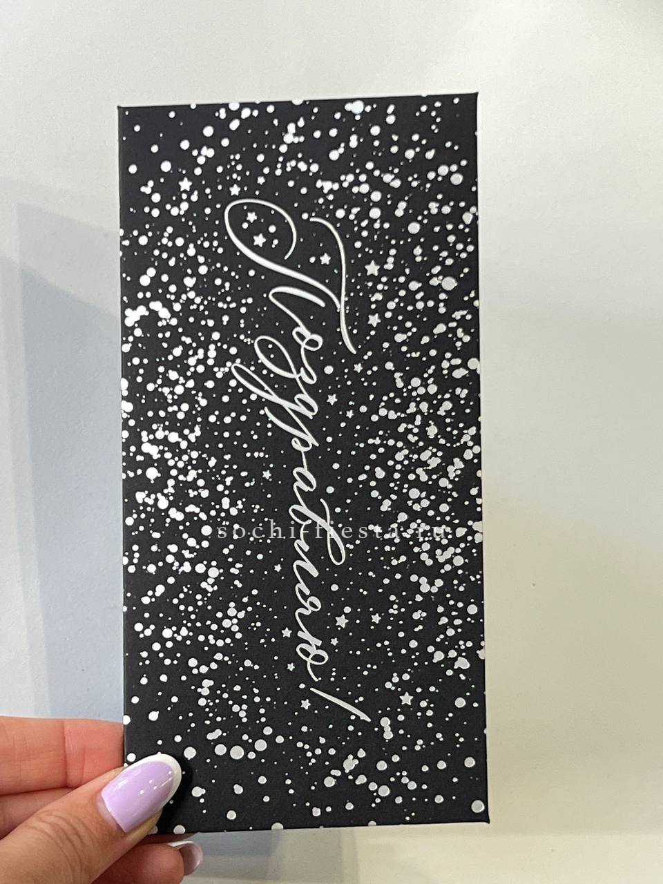 можем внести Ваш текст, только самое важное ;) Примерно, 1-3 предложения. Прикладывается к букету или композиции.
