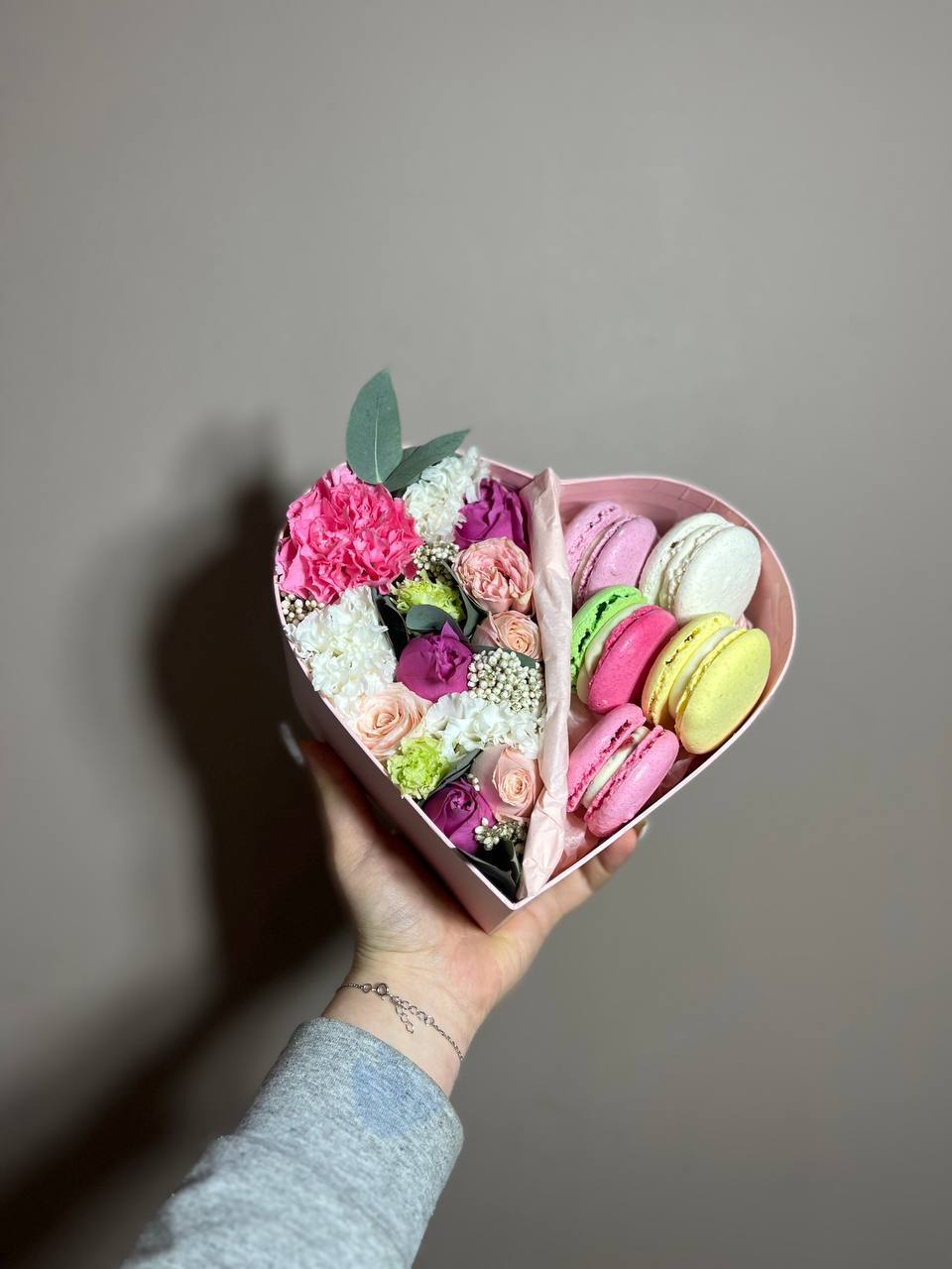 Для заказа товара "Дуо цветы и макаронсы" с доставкой в Астрахани нажмите в корзину