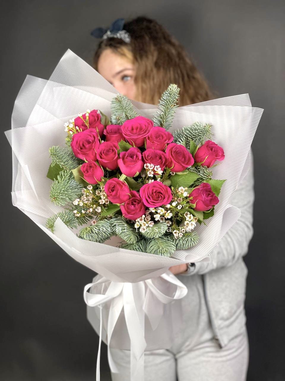 Мы работаем только со свежими цветами — букеты радуют от 7 до 14 дней и дольше при правильном уходе.