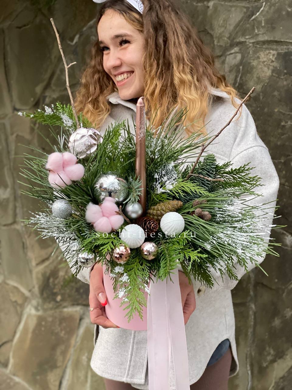 датский нобилис, игрушки, хлопок, свеча, оазис, бокс, лента Готовая композиция может иметь незначительные внешние отличия от примера на фотографии.