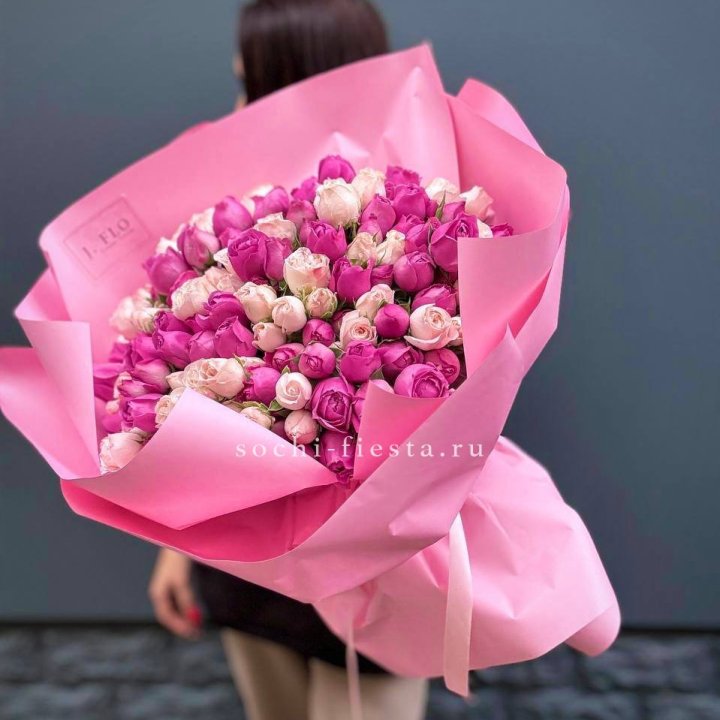 Двухцветные и жёлтые сорта иногда доступны под предзаказ. Пионовидные розы — под свадьбы и никахи, с предзаказом за 7-10 дней. Кустовые — в авторских работах, реже в моно-букетах.