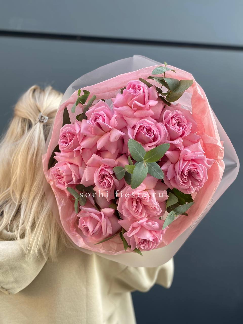 вывернутые розы - 11 шт., эвкалипт-2шт, лента, авторская упаковка.