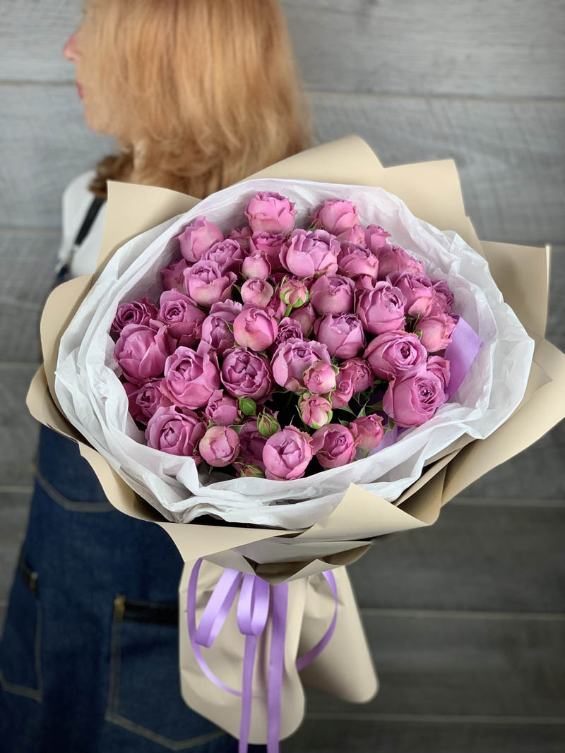Охапка кустовых роз бомбастик пинк