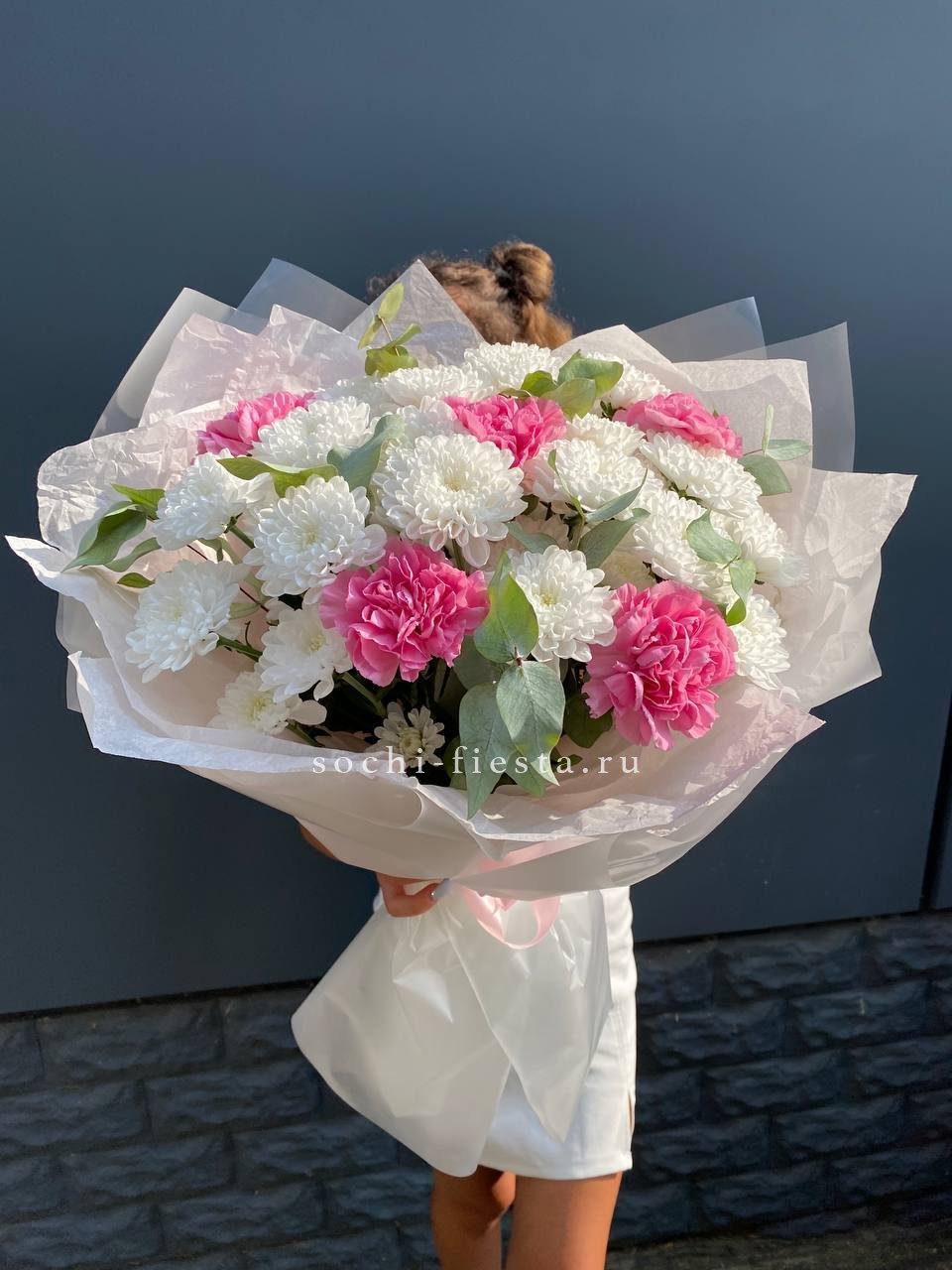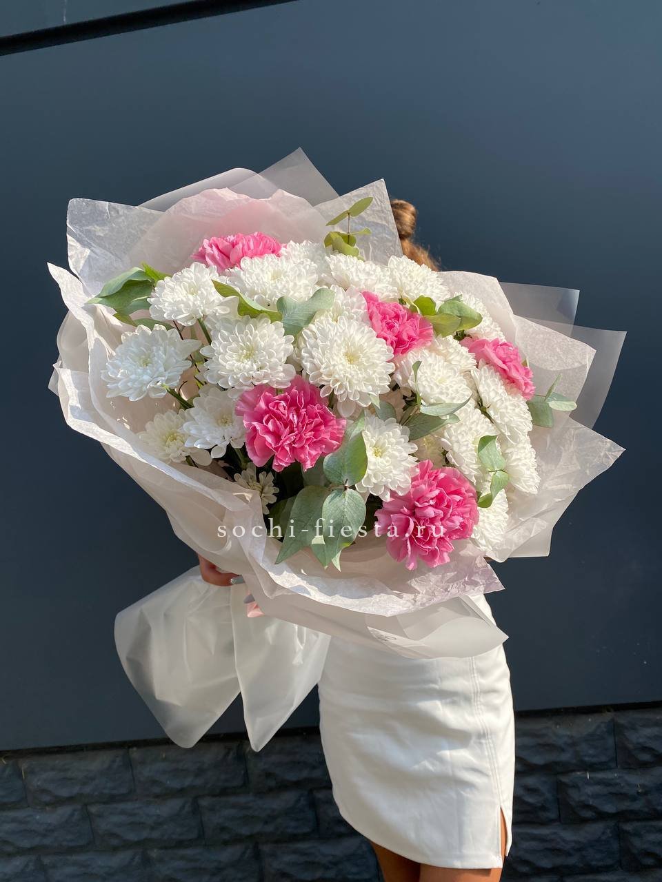 Для заказа товара " Букет хризантем и диантусов "Воздушный"" с доставкой в Астрахани нажмите в корзину