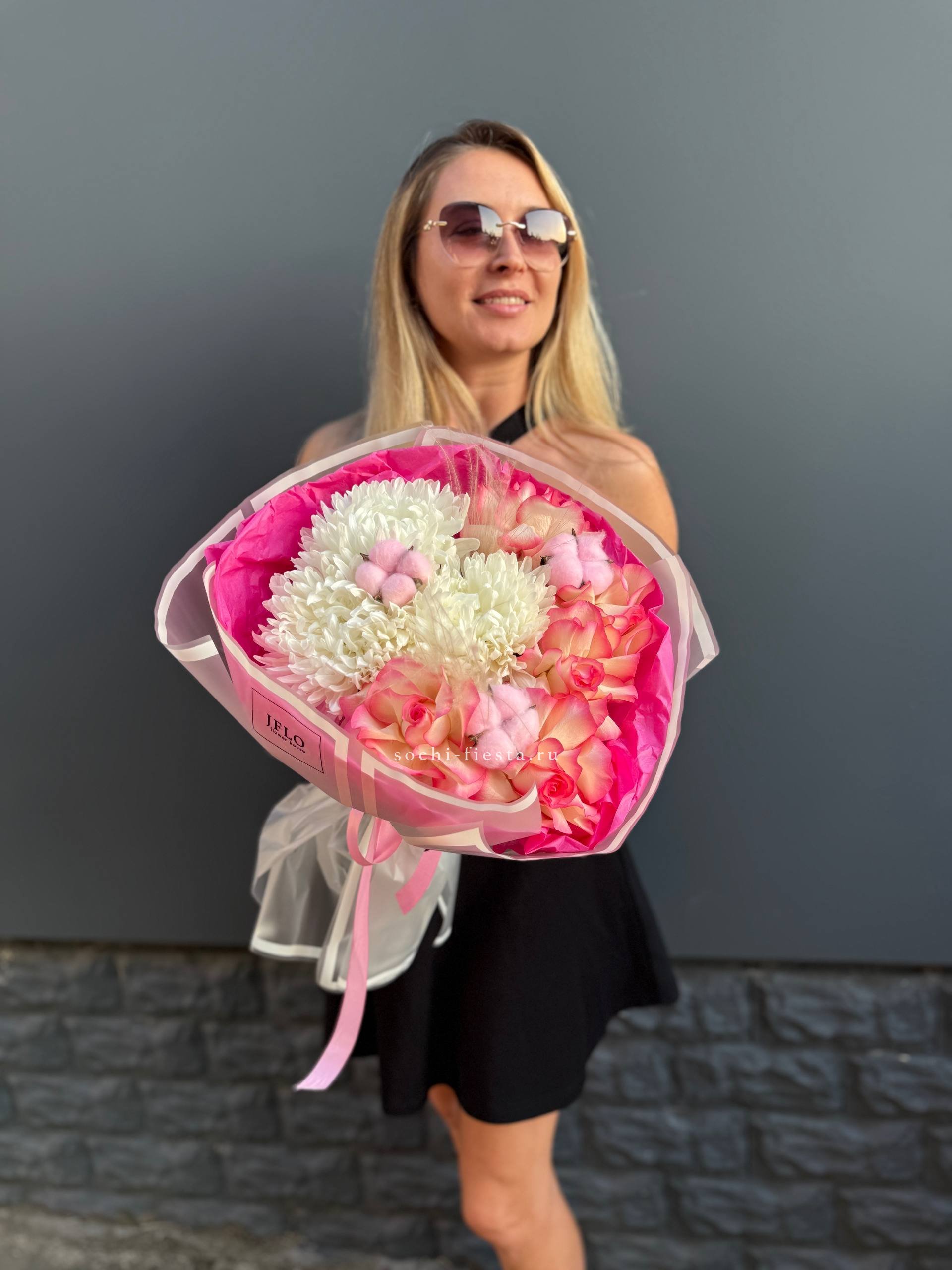 Для заказа товара " Букет из одноголовых хризантем и джумилии" с доставкой в Астрахани нажмите в корзину
