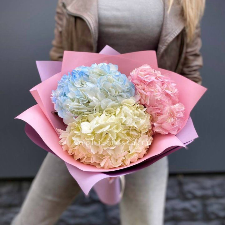 Сезонные хиты в Астрахани складываются из голландской и эквадорской срезки круглый год плюс сезонные акценты. Пионы в мае-июне, гортензия летом, хризантемы осенью, амариллис зимой. Местные теплицы добавляют свежие позиции в весеннее межсезонье.