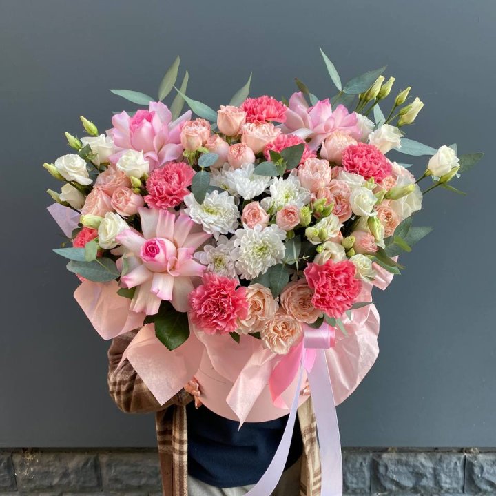 Доставка по Астрахани — обычно в пределах получаса-часа. Маршрут простой, без больших пробок. Иногда флорист сам доставляет заказ, особенно если клиент живёт рядом со студией.